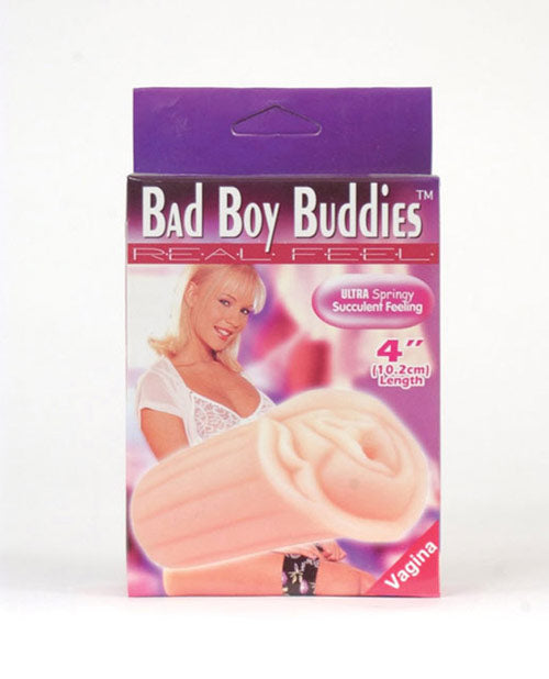 How long have you been waiting to slip your cock in the perfect vagina? There's no need to put yourself off any longer. Use the Bad Boy Buddies Real-Feel Vagina male masturbator for the same succulent, springy, sucking sensation you would get from a real pussy. The 4" of soft jelly material is so lifelike - you'll never know the difference!