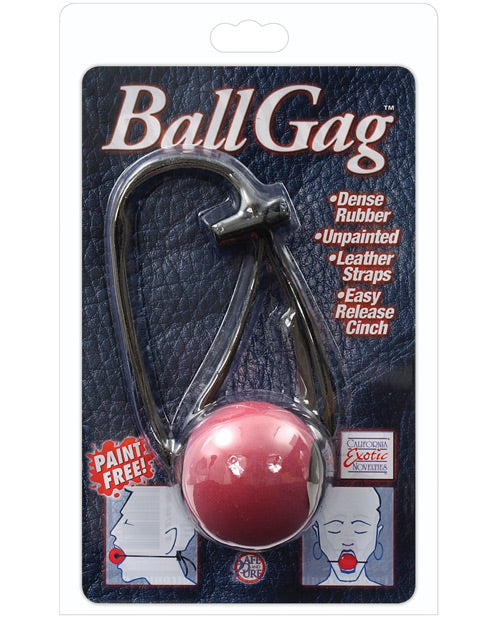 No bondage experience is complete without a ball gag. Add this classic piece to your collection for the ultimate way to silence and restrain your partner. The dense rubber is ball is unpainted, and features a leather strap with an easy release cinch. Pair it will a blindfold and some cuffs, and you've got everything you need to practice sexual bondage. Ball gag dimensions: 2" diameter.