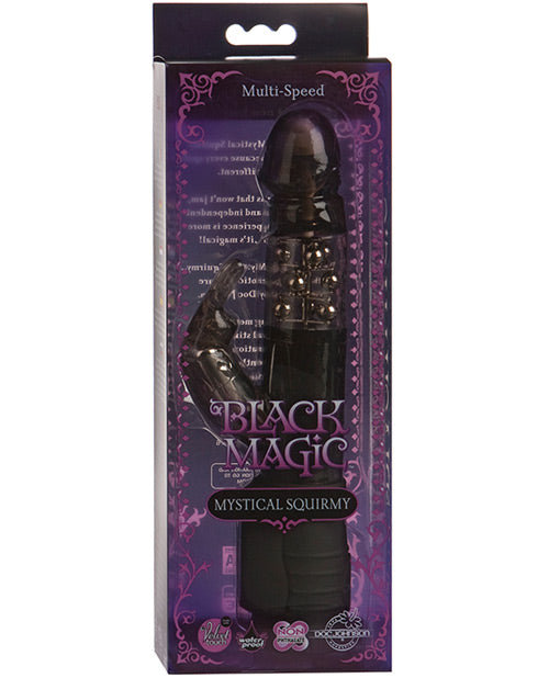 Meet the Black Magic Mystical Squirmy, Doc Johnson's sexiest new look in vibrating sex toys! The Mystical Squirmy is the latest in erotic pleasure conjured by Doc Johnson, with metal beads that won't jam, reverse rotation and independent controls, this experience is more than mystical... it's also magical. Be sure to enjoy the great advantages of this magical toy, with multi-speed vibrations and rotations as well as the auto reverse rotation feature to find your perrrrr-fect spot! Overall length: 9"; Usable Length: 4 3/4"; Diameter: 1 3/8". Requires 3 AA batteries (not included).