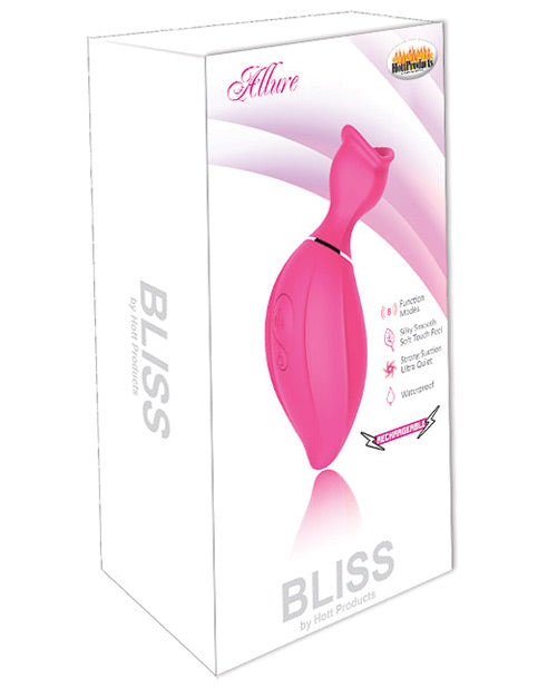 Bliss Allure Magenta Pink Clitoral Vibrator. Never before has a toy been released with such attention devoted to satisfying the clitoris! Bliss Allure features the most incredible suction sensations that you will ever experience! You will swear it is your partner that is satisfying you orally! Adjust the speed from mild to wild as you roll your eyes back in complete ecstasy!