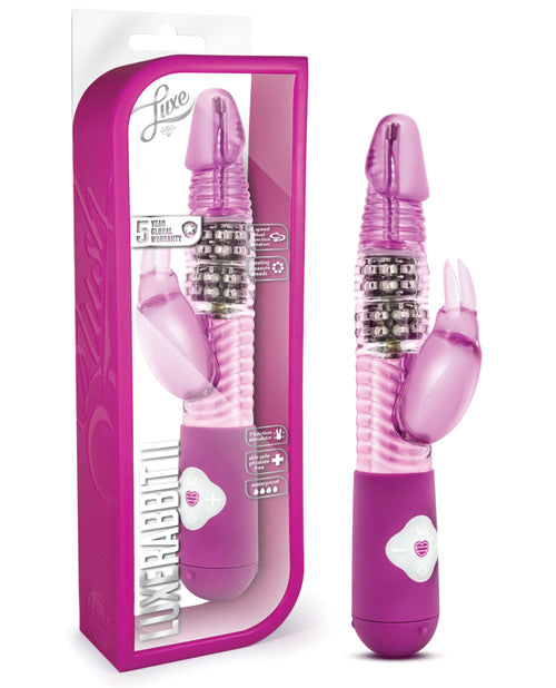 Looking for a vibe that gives you more? Look no further. The Blush Luxe Rabbit II is the vibe of choice for the sophisticated connoisseur. The soft shaft is made from pure phthalate free elastomer, which is known to be among the most body safe materials. The Luxe Rabbit II is shaped for intense stimulation. Equipped with a powerful high tech motor, Luxe Rabbit II runs quietly. A unique feature is the multidirectional rotating pleasure beads that will massage you ever so erotically. The cute little rabbit vibrates against your clitoris, which you control with a push of a button. Made from body safe elastomer. 7 vibrating functions. 3 speed rotating shaft and pleasure beads. Waterproof. Beads rotate in opposite directions. Length: 10.2". Insertable: 5". Width: 1.5". Circumference: 4.5". Weight: 12.6 ounces.