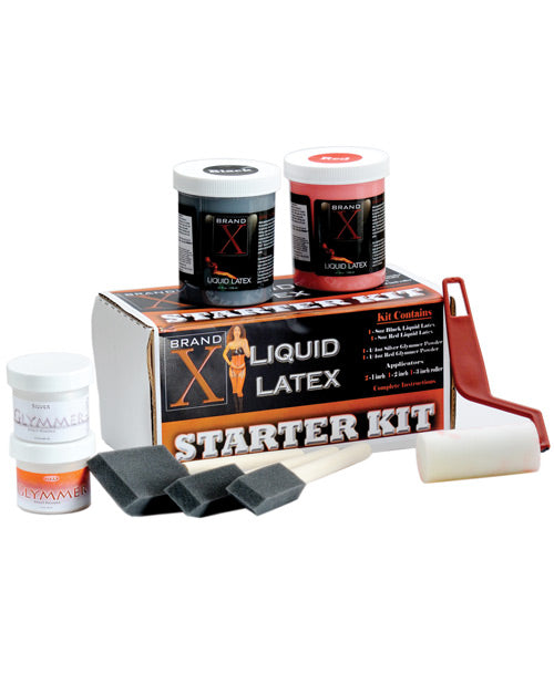 Haven't used Brand X Liquid Latex? Try the starter kit and stretch your imagination! This kit contains everything you need to get started. (2) 8 ounce jars of Brand X Liquid Latex (black, red), (2) quater-ounce jars of Glymmer (Red & Silver), assorted Brushes and instructions.