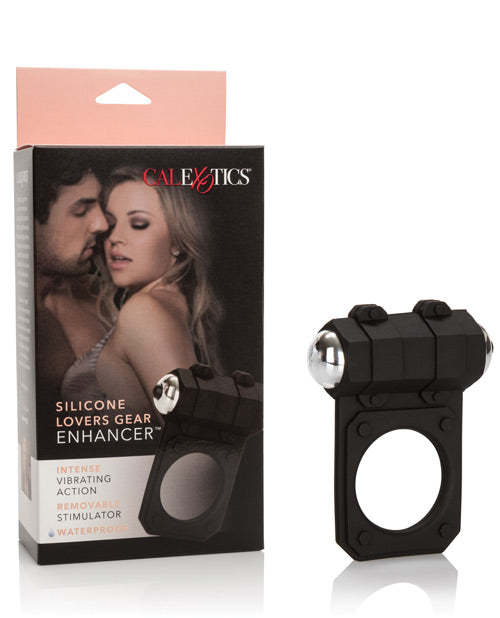 CalExotic's Silicone Lovers Gear Enhancer comes complete with a full sized bullet transmitting powerful tingly vibration. Uniquely shaped and thrillingly functional, this couples' tool re-imagines a classic with its wireless, portable and fully waterproof design. Stretching to fit securely around the base of the penis (or shaft and testicles), the Enhancer holds tight to maintain erection strength and overall stamina. Once in place, the full-sized vibrating top positions itself in the path of a partner's clitoris or perineum, bumping and grinding along with natural movement. Vibration comes courtesy of a removable core bullet- activate with a touch of a button placed for easy access. Requires 3LR44 cell batteries (6 included) Waterproof. The Enhancer measures approximately 1.1 inches (2.8cm) in diameter and stretches to fit most.