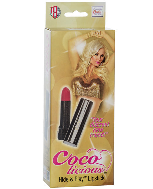 Your discreet new friend! Hide and Play Lipstick is a sophisticated, glittered case with vibrating Silicone lipstick tip with 8 functions of vibration, pulsation and escalation in a compact design. Easy push button control - hold for 3 seconds to turn off. May be used in or out of the water. Body safe, unscented, Phthalate-Free Materials: Silicone (tip) ABS (case) Battery included (1 N) 3.25" x .75"/8.25 cm x 2 cm (lipstick) .75" x .5"/2 cm x 1.25 cm (stimulator)