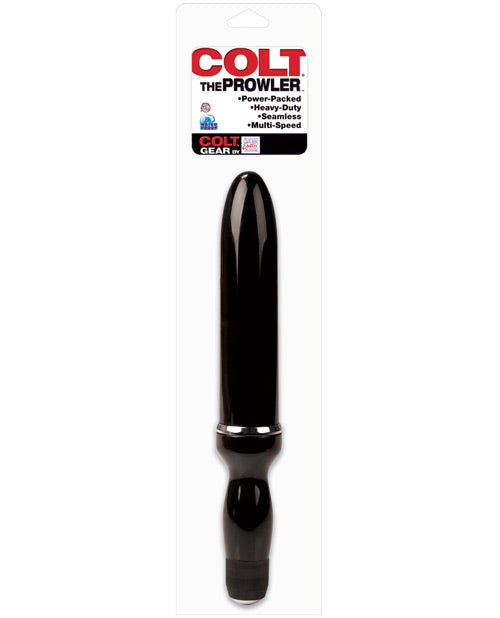 The Colt Prowler from Cal Exotics is a power packed, heavy duty, seamless, man-sized vibrating probe. With secure grip handle and multiple speeds to choose from, this man vibe provides plenty of satisfying stimulation. Made from ABS (probe and handle); ABS with Metallic Plating (ring and cap decor). 6.25"x 1.5"/ 16 cm x 4 cm (usable). Requires 2 AA batteries (not included). Black.