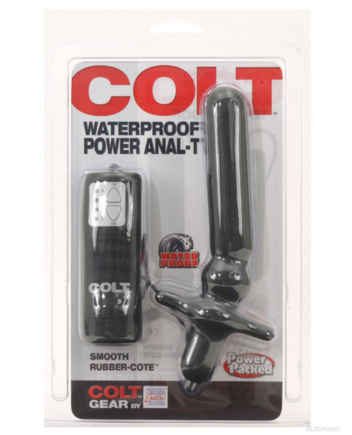 Colt has added new product to their already popular line of vibrating stimulators. The Waterproof Power Anal-T has an insertable length of 5" and girth of 1" to tickle you just right. A powerful multi-speed controller is used to deliver ultimate sensations. To add extra comfort the anal-T and controller have a smooth rubber-cote. Two AA batteries, not included, drive vibrations through you, and fill you with ecstasy. This Colt is sure to make you hot, even if the water is cold!