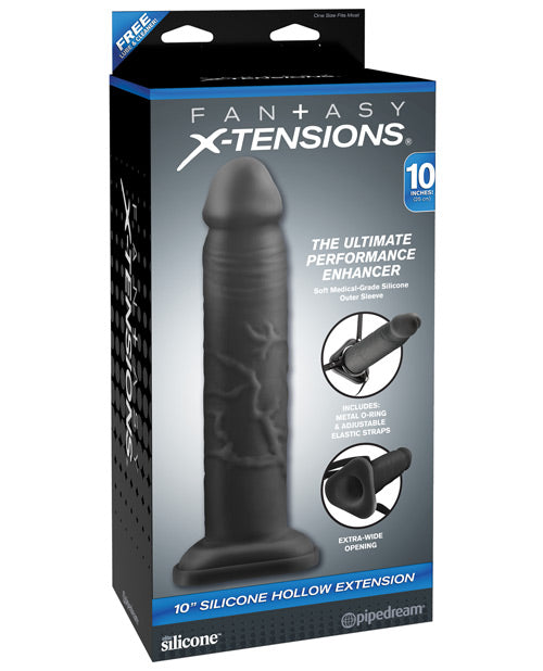 Turn your penis into an instant pleasure machine with the incredible Fantasy X-tensions. Now you can be all the man you can be and satisfy your partner with this easy-to-use erection enhancer. Developed as a safe, affordable, non-surgical alternative to expensive medical procedures and pills, your Fantasy X-tension will give you the biggest, thickest, most satisfying pleasure rod you ever imagined! Perfect for men with ED and midway performance problems, your new enhancer will deliver results that both partners will love! The Silicone Hollow Extension is the ultimate hollow strap-on extension for men of all sizes! Perfect for those suffering from ED or premature ejaculation, this hollow strap-on features a lifelike 10" phthalate-free dildo and super-stretchy adjustable elastic straps. With a tapered head to ease insertion, the dual-density dildo features our super-soft Elite silicone on the outside, while the firm hollow inside features Luv-Touch coating for exceptional comfort. The extra-large 1.6" (4 cm) wide opening easily accommodates most sizes and feels great against your skin, and the adjustable harness fits up to 50" (127 cm) waists. With the length and girth you've always dreamed of strapped onto your crotch, you'll have the confidence you need to satisfy your lover like never before! Cleanup is a snap after the fun with the included toy cleaner and warm water. One size fits most. This is not a condom. Item measurements: Length: 10" (25 cm), Width: 2.3" (6 cm), Inner diameter: 1.6" (4 cm).