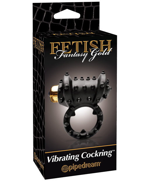 For fetish couples who demand the very best, we proudly present Fetish Fantasy Gold, the exquisite new collection of premium fetish must-haves developed for fashion-forward couples. This contemporary line of bold new bondage essentials features distinctive designs, sophisticated styling, and custom concepts created to excite and incite the modern fetish connoisseur. Prolong the fun and make pleasure last with this luxurious Vibrating Cockring. Simply press the easy-access button on the gold bullet to enjoy three powerful speeds for incredible stimulation. The one-touch control makes it easy to operate, while the whisper-quiet vibrations and soft TPE ticklers tease and please to offer the most intense orgasm you've ever imagined. It's perfect for enhancing the wearer's pleasure, as well as offering thrilling clit stimulation for your partner. Wear it in the shower or spa and turn bath time into pleasure time! Diameter: 1.25" (3.2 cm)