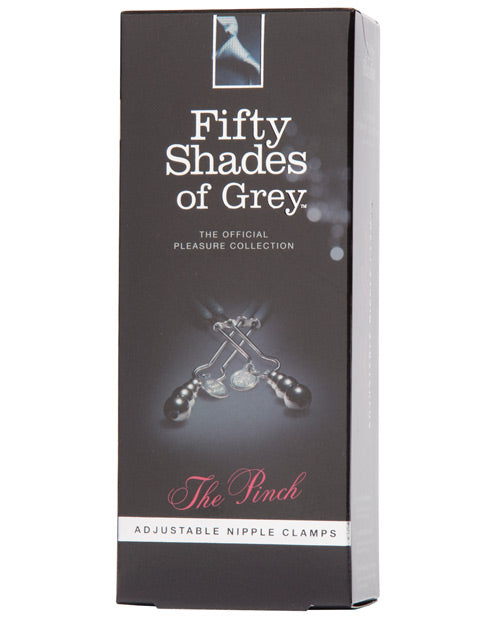 Fifty Shades of Grey The Pinch Nipple Clamps. Revel in the mid-ground between pleasure and pain as you lose yourself to the slowly-intensifying sensations of these weighted nipple clamps. Adjustable pressure grips you during wear to escalate your sensitivity until you beg for your erotic release. "These are for both pleasure and pain." Christian murmurs. Christian releases the first clamp and then the other, causing my nipples to sing with a surge of sweet, sweet pain... but it's oh-so good. - Christian Grey and Ana Steele. Firm-but-gentle, these adjustable clamps pinch the nipples with just the right amount of pressure to slowly build a warming sensitivity that blossoms into a titillating ache. Swaying from each tweezer clamp is a string of metal weights, causing further sensation to resonate through your nipples with every subtle movement. Soft silicone diffuses the severity of these clamps, offering a cushioned bite that allows pressure and movement to be the focus of your play. Full control is ensured courtesy of the adjustable fit of the clamps, so the pinch is never too much but always enough. The grip is easily adjusted during wear for instant release, or to further intensify your play. Ideal for use as part of progressive sensory play, your erotic response can be deepened by pulling on the weights or using a vibrator to send delicious shivers through your sensitized nipples. Part of the Fifty Shades of Grey The Official Pleasure Collection approved by author E L James. Complete with a Fifty Shades of Grey storage bag, these nipple clamps are the ideal erotic gift for fans of the trilogy.