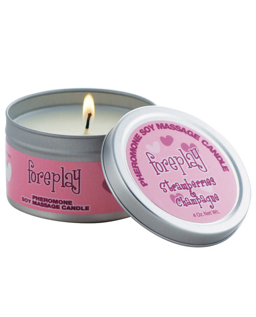 Foreplay Pheromone Soy Massage Candle - 4 Oz Strawberries & Champagne