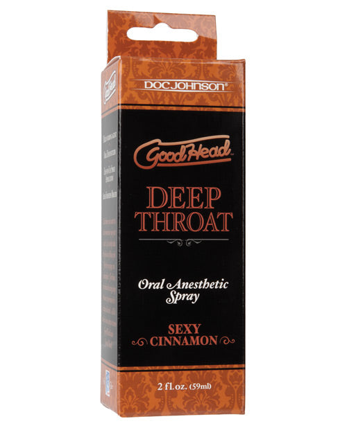 Everyone loves good head, but many people find it difficult to accommodate their partner's full manhood. Doc Johnson presents GoodHead Deep Throat Spray, a delicious throat desensitizer that will help to alleviate your gag reflex during oral sex, turning good head into great head. Delicious and functional. What more could your partner want in an oral sex aide? Available in 4 delightful flavors: Mystical Mint, Sexy Cinnamon, Sweet Strawberry, and Wild Cherry. 2 oz. bottle. Proudly made in America.