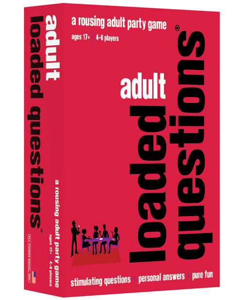 Get ready for fun questions, ridiculous answers and nonstop laughter as you and your friends take turns guessing which player wrote which answer while writing your own personal answers to 308 suggestive, silly, and stimulating questions. With highly desirable VIP cards awarding your efforts on every turn, Adult Loaded Questions guarantees all players a very happy ending. For ages 17 and up. 4 to 6 players. Contains: Spinner Board and Spinner, 308 Adult Loaded Questions, 55 VIP Cards, Answer Pad, Pencils, and Rules.