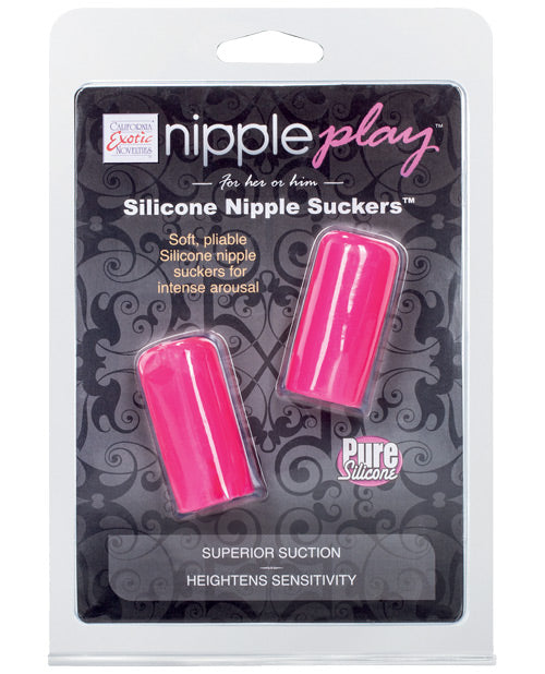 CalEx nipple play Silicone Nipple Suckers. 2 soft, pliable Silicone nipple suckers for intense arousal. Soft and squeezable. Incredible suction for increased sensitivity. Silicone. 2.25" x 1"/5.75cm x 2.5cm.