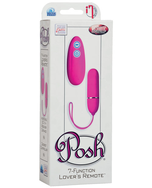 The Posh 7-Function Lover's Remotes, from Cal Exotics, is a remote control stimulator with a full 49.25'/15 m range. 7 functions of intense vibration, pulsation and escalation. Easy touch controller with LED and auto-off button. EC-R+TTE certificate included. ABS with PU Cote (controller, stimulator) Silicone (cord) ABS with Silver Plating (decor). Requires 3 Watch Batteries & 1 12V Battery (Both Included). 2.75" x .75"/7 cm x 2 cm (stimulator).