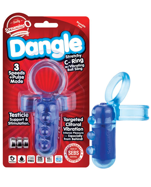 The Dangle is a unique take on a classic vibrating cock ring specially shaped for pleasure during imaginative sex positions - especially ones from behind! The Dangle is powered by a vertical vibrating motor equipped with a stretchy sling that safely hugs the testicles for a pleasantly snug sensation. Simply stretch the top ring around the penis and gently slip both testicles through the sling until you feel a firm and secure hold. The Dangle is made of body-safe SEBS, a super-stretchy material that's been lab tested for quality and safety and makes unique cock rings like these affordable to all. When worn during sex positions from behind, the Dangle's vibrating motor is perfectly positioned for clitoral or perineum massage and transfers vibration via three solid pleasure beads aligned in a row. This isolation design offers erection enhancement with a vibrating boost and unique massage on multiple erogenous zones. And with the push of a button, the Dangle vibrates at 3 powerful speeds plus pulsation for sensational, more satisfying sex in even the most creative positions!