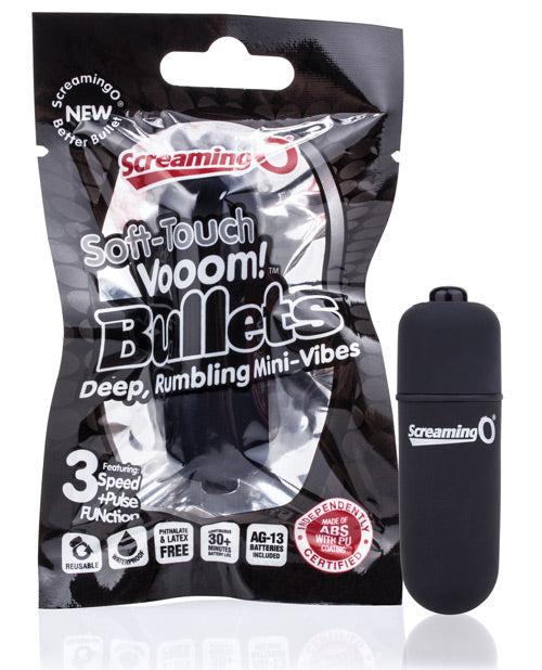 Soft-Touch Vooom Bullets combine the compact shape, 4-function motor, and soft coat of Screaming O's famous Soft-Touch Bullets with a one-of-a-kind low-frequency motor for sensations unlike anything else on the market. Following research into vibration frequency and optimal clitoral massage speeds, Screaming O developed a unique motor that buzzes with deep rumbling vibration you can feel from the inside. And thanks to a 100% waterproof soft-touch shell, users can enjoy smooth, gliding sensations in the bath or shower! These portable mini vibes pack intense power in an on-the-go size that's perfect when larger, bulkier vibes just won't cut it and add essential stimulation for better, more satisfying sex!
