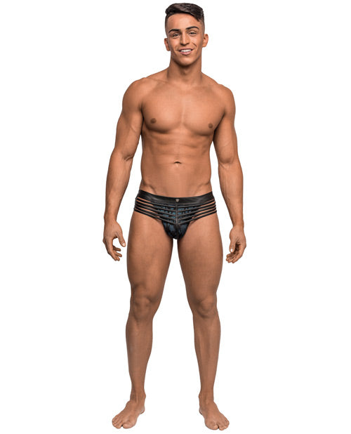 Strapped & Bound Foil Print Strappy Jock Blk-blu L-xl