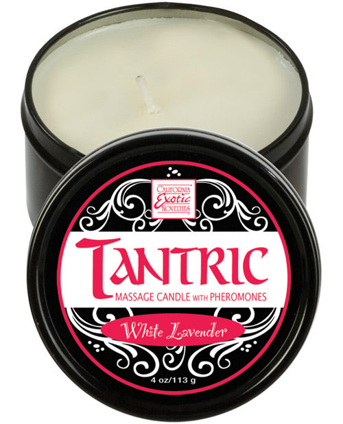 Tantric...The art of sensuality! Heat up your intimate pleasures and reach new heights of intimacy with the outstanding Tantric Soy Candles from California Exotic Novelties; infused with nature's own attractant, pheromones. These Soy Candles liquefy into a warm and moisturizing massage oil that enriches the skin and enhances the touch. Made from 100% natural soy with hemp wicks, candles will burn up to 40 hours. All products are made in the USA, with no animal testing. 4 Oz / 113 g. White Lavender.