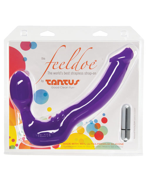 The Feeldoe is an amazing sex toy that combines the excitement of strap-on sex and the pleasures of mutual penetration without the hassles of a harness. Unlike most double Dildoes, the Feeldoe is contoured to fit the body. The 1 1/2" diameter bulb is held inside the vagina by contracting the vaginal muscles. The ridged portion stimulates your clitoris as the 6 1/2" X 1 1/2" shaft penetrates your partner at just the right angle. Slip in the 2.25" x .625" mini vibrator and feel the vibration throughout. It has an easy touch on & off button. Three G-13A watch batteries are included for your immediate enjoyment! No harness necessary! Experience full skin on skin contact for a more intimate connection with your partner! The Feeldoe bulb can also be inserted anally for solo double satisfaction or for partner sex. A male can wear it anally for double penetrating action or in cases of penile dysfunction. Using the Feeldoe will develop your anal or vaginal muscles for more intense orgasms. It is made of safe, 100% silicone. It is easily cleaned with anti-bacterial soap and can be sterilized by boiling in water for 3 minutes or by soaking it in a 10% bleach/water solution. Have lifetime pleasure with the Silicone Feeldoe... it is smart, safe, and sexy!