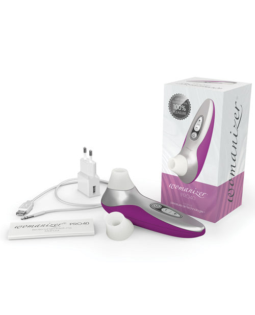 The Womanizer PRO40 is a new revolutionary product that provides touchless stimulation of the clitoris. The soft silicone head offers light suction with pulsating pleasure waves for a completely unique and intense experience. For those who are looking for a toy that does not require penetration or for those seeking a new way of reaching climax then the Womanizer PRO40 is for you. Features World's first touchless technology Unique clitoral stimulator USB rechargeable (cable included) 2 stimulation heads (N and XL) 2 year warranty Size: Length: 6" Width: 2" (at widest) Magenta.SELLING OR ADVERTISING ON AMAZON.COM OR EBAY.COM OR OTHER INTERNET AUCTION SITES IS STRICTLY PROHIBITED, NA Only