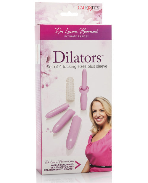 Pleasurable training in the privacy of your own home! The waterproof Berman Dilator Set contains a powerful vibrating dilator, 3 interlocking graduated sizes of dilator sleeves, a soft silicone sleeve that is lined with nodules, and a locking ring. This whole set will fit inside the included discreet designer pouch. Whether you struggle with discomfort during intercourse, sexual anxiety, or simply want to work on your pelvic floor strength, the Berman Center Dilator Set is right for you. The graduated sleeve sizes start with a circumference of 2.75" and they go up to 4.75". The usable length is up to 6.25" long. Thanks to the vibration options, you will get to focus on pleasure along with training. Two AA batteries, not included, are required for multiple speeds of vibrations. With Berman Center intimate accessories, you will feel empowered to maintain and improve your sex life!
