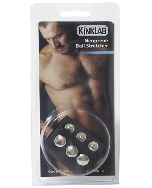 From Kinklab comes the Long 3 Snap Neoprene Ball Stretcher. The soft, washable neoprene is safe to use with oil-based lubes and gentle on those with sensitive skin. This 2" version is great for experienced users