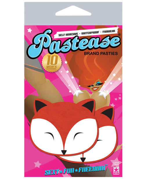 So Foxy! Foxy Face Nipple Pasties in Coral are made of soft yet durable denim material that forms to curves and resists wrinkling over hardening nipples. Just peel-and-stick on clean dry skin. Features latex-free, medical-grade, waterproof adhesive that stay securely in place for as long as you like and until they are gently removed. 2.6 inches by 2.1 inches. Coverage of 2.1 inches.