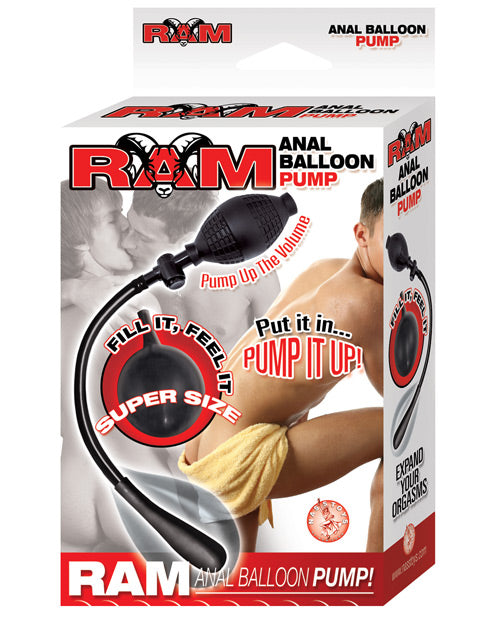 The Ram Anal Balloon Pump from Nasstoys. E-Z squeeze bulb. Balloon expands 3 times it's size. Bendable tube. Safety release valve. Phthalates free. Materials: Hose & Release Valve - PVC, Pump & Balloon - Latex. Length: 17".