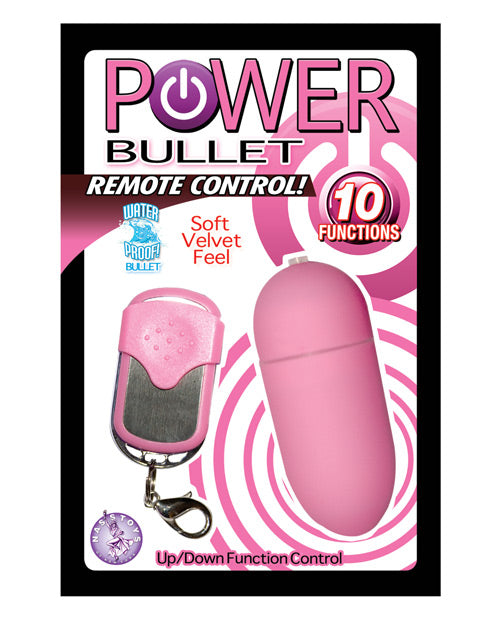 From Nasstoys comes the Power Bullet with Remote Control. It has 10 functions with up/down function control so you can ramp up or down your pleasure. The wireless remote control allows you or your partner to control your pleasure. Waterproof and phthalates free. 2 AAA -bullet, 1 27A, 12V-remote included. Length: 3", diameter-4.25".