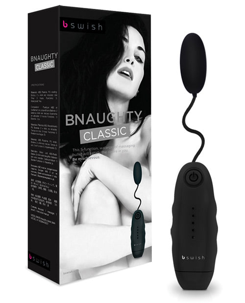 Be bold, be mischievous. Tihs Bnaughty Classic Vibrating bullet is waterproof & offers discreet pleasure for private play time or to share with someone else. This item uses 2 AAA batteries, not included. Bnaughty is designed to pander to your deepest whim with its compact oval shape, silky touch, and pitter-patter vibrations. Be in control or let your partner play with the four-speed remote operation!