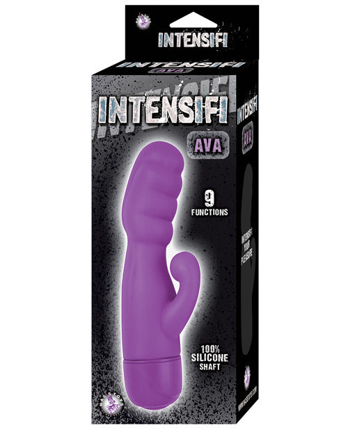 G spot Toy with Clitoral Tickler to intensifi your pleasure. Waterproof, 100 % silicone. 9 functions. Overall Length: 7.5", Insertable length: 4.625" Width: 1.5", Circumference: 5". Requires 2 AA batteries, not included. Purple. From Nasstoys.
