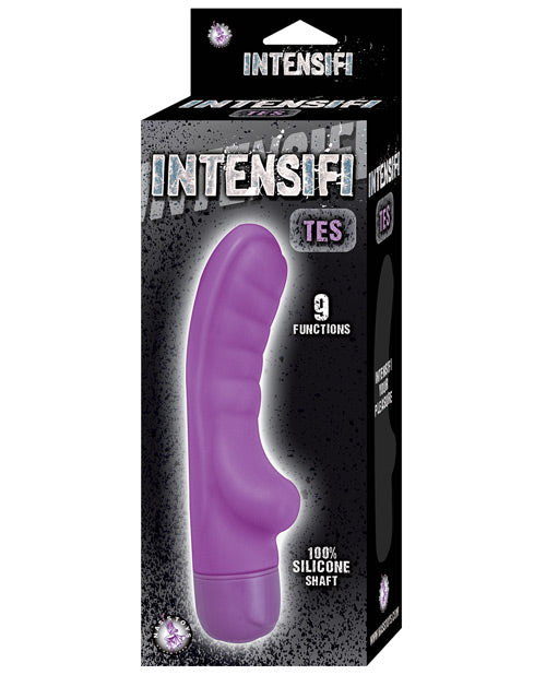 Ribbed vibe to Intensifi your pleasure. 100 % silicone, 9 functions. Waterproof . Overall Length: 7.75", Insertable Length: 4"Width: 1.5", Circumference: 4.75". Requires 2 AA batteries, not included. Purple. From Nasstoys.