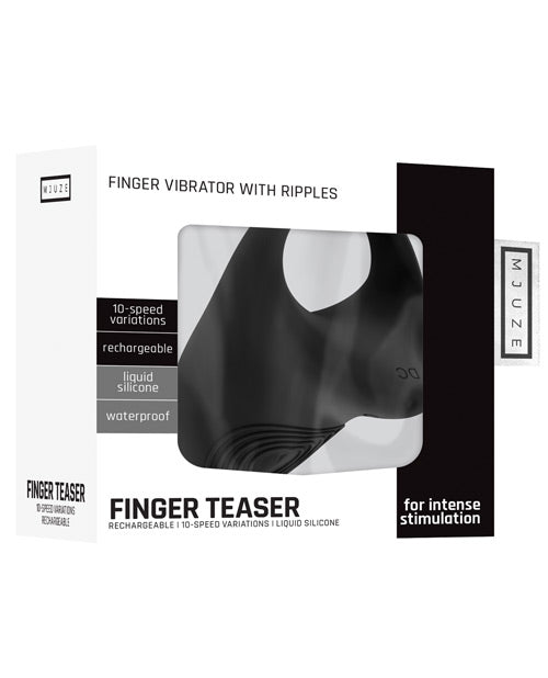 Mjuze will become your own personal goddess of pleasure. The Finger Teaser is a 10-speed finger vibrator that gives sensual vibrations with the power only a god can bring. The soft silicone material feels amazing against your skin and warms up quickly to your body temperature. It can be used to spice up the sex life with your partner or for some solo sessions.The Finger Teaser allows you to ride on the clouds of pleasure like a goddess! Specifications: - Rotations per minute: 10,000 RPM - 10 Speed modes - Noise level: Max, 45 dB - Total Length: 6.7 cm / 2.63 Inch - Total Width: 4.4 cm / 1.73 Inch - Width Vibrating Tip: 2.7 cm / 1.06 Inch - Diameter Inner Ring: 3.3 cm / 1.29 Inch - Rechargeable - Battery charging time: 180 minutes - Battery life: 60 minutes - Material: Liquid silicone - Waterproof - Phthalate free -Dimensions: 4.29" x 4.17" x 2.4" -Weight: 4.09 oz